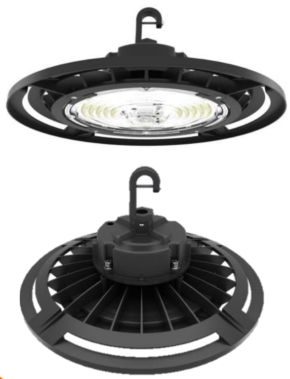 El equipo viene preparado para una instalación sencilla mediante gancho de suspensión, lo que facilita el retrofit en instalaciones existentes. Su rango de voltaje de 100-277V permite una operación estable frente a fluctuaciones en la red eléctrica industrial.